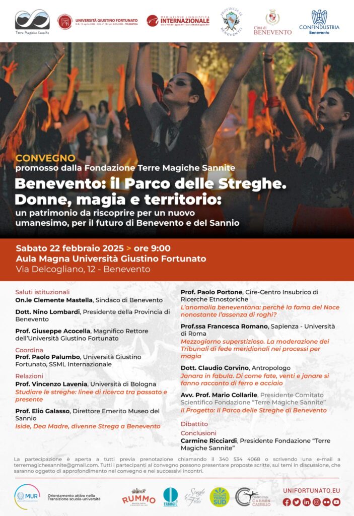 Promosso dalla Fondazione Terre Magiche Sannite si è svolto sabato 22 febbraio 2025, presso l’Università Giustino Fortunato di Benevento, il convegno dedicato alla presentazione del progetto del Parco delle Streghe.